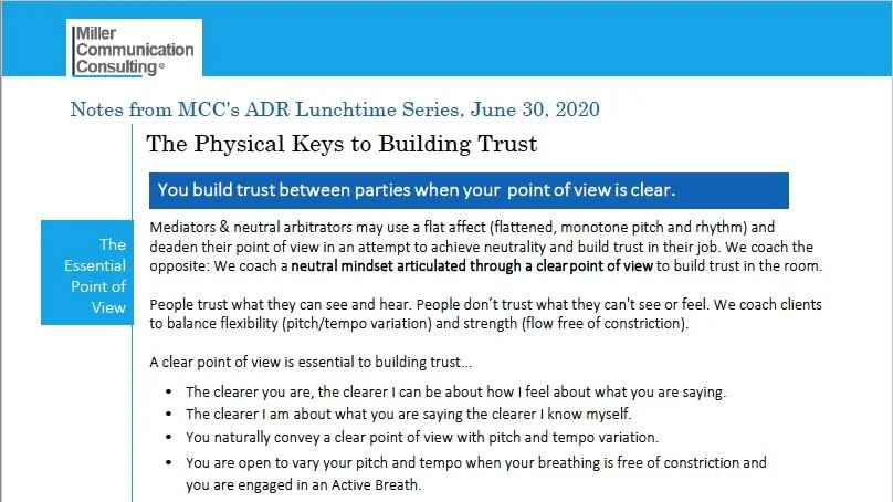The latest neuroscience shows that how we breathe and speak directly impacts the cortisol levels in ourselves and in those with whom we communicate. When mediating potentially charged discussions, do you have reliable physiological tools to stay relaxed in the fray? Tools more specific than just reminding yourself to “stay calm & breathe”?